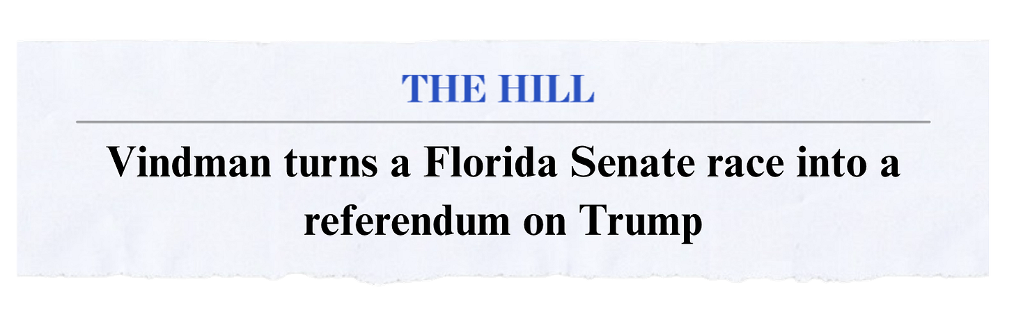 My Senate race in Florida is especially competitive. The attention and energy around this race has been amazing. And, our data shows that if I perform on the same level as these special elections, we have a clear path to defeating Ashley Moody and flipping Florida’s Senate seat. Many of you have followed me. You know I will work harder and fight harder to make sure we end the chaos, crush corruption, and cut costs.