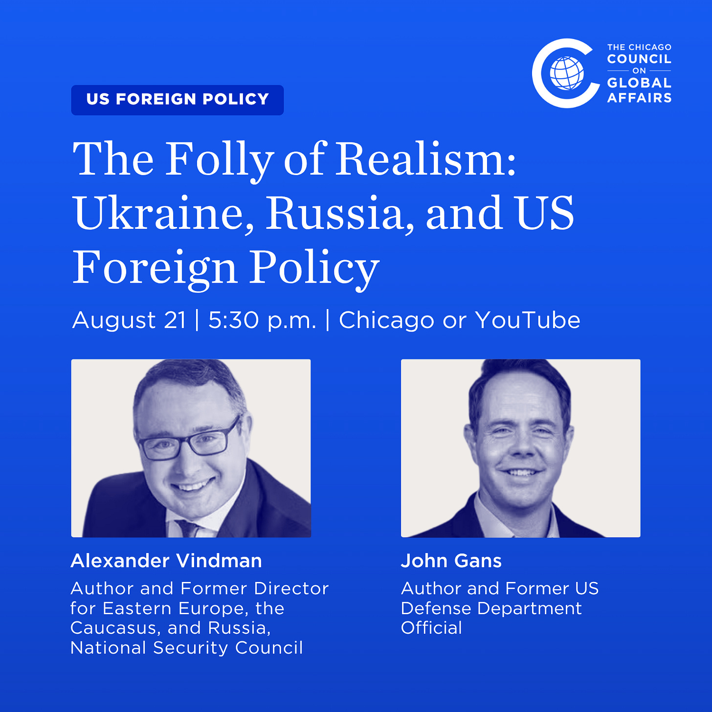 This weekend I will be in Chicago, Illinois for a series of public engagements. Tomorrow, August 21st at 5:30 pm CT I will be speaking with John Gans at the Chicago Council on Global Affairs. This talk is titled “The Folly of Realism: Russia, Ukraine, and US Foreign Policy” and covers several topics raised in my recent book. Click here to register for this event.