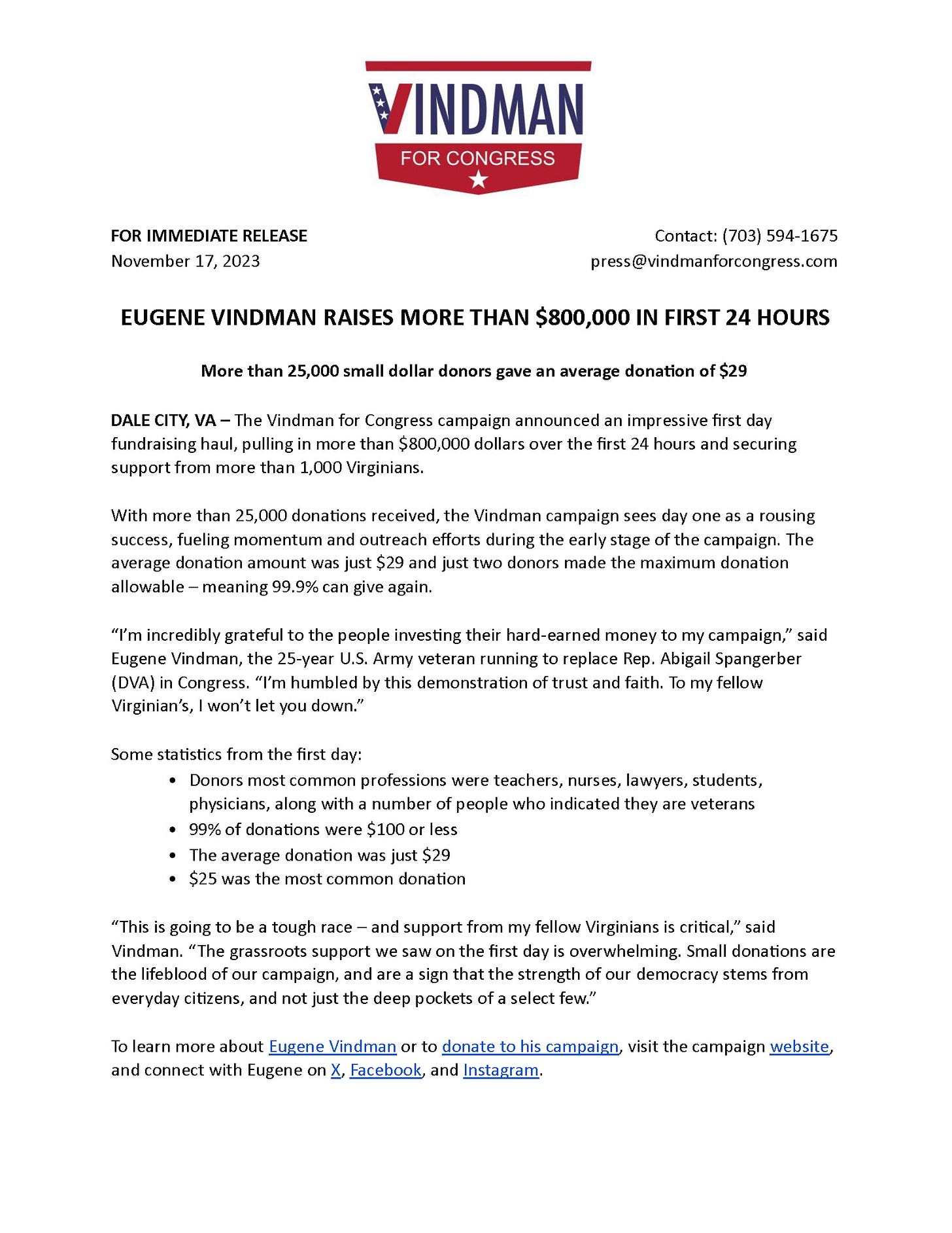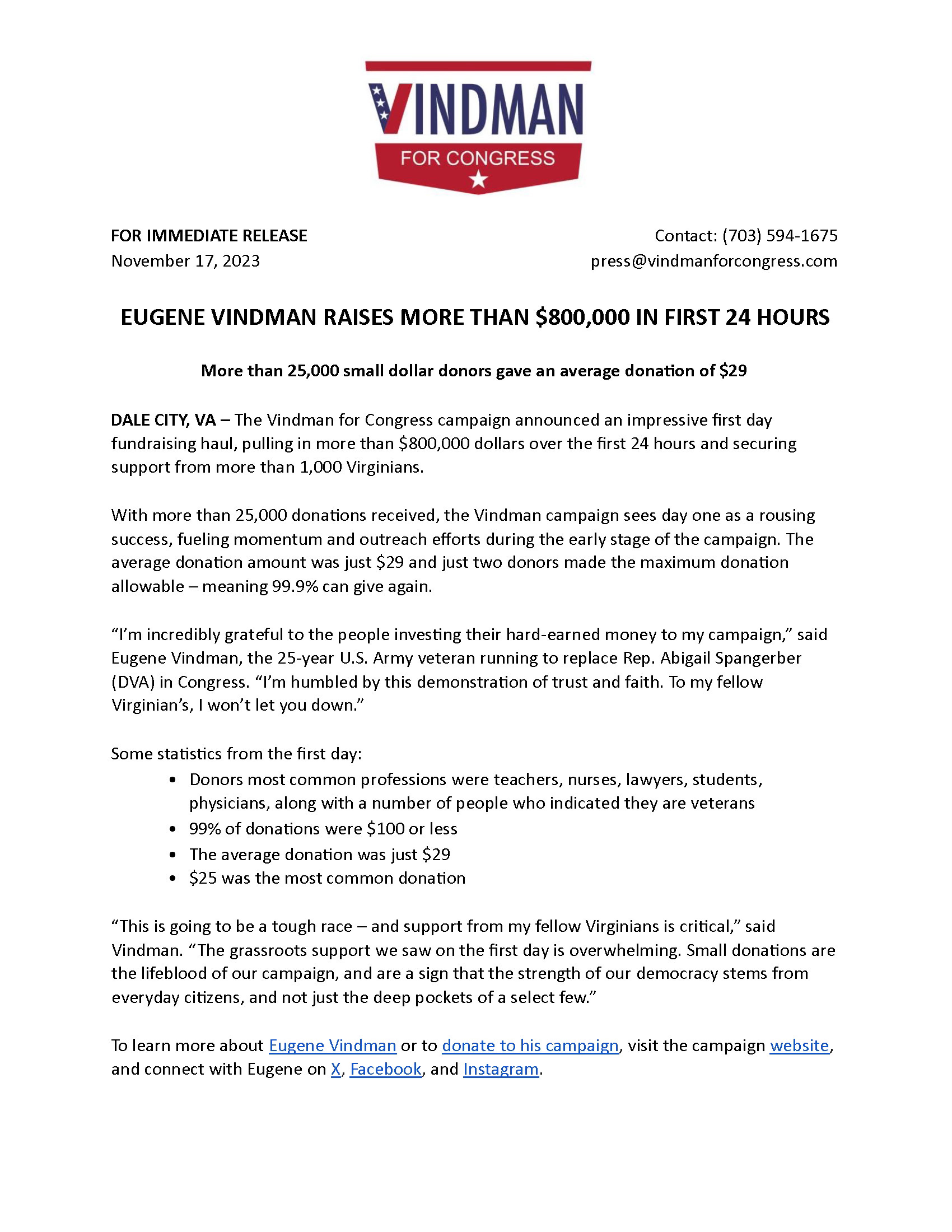 I just happily pledged a (modest) monthly contribution! Heck, I'd support TWO Vindmans running for office!